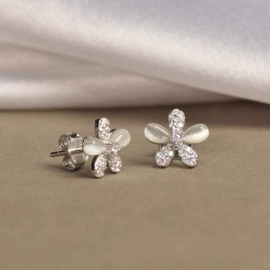 Butterly Wing Silver Earring With Lab Grown Diamond Lining