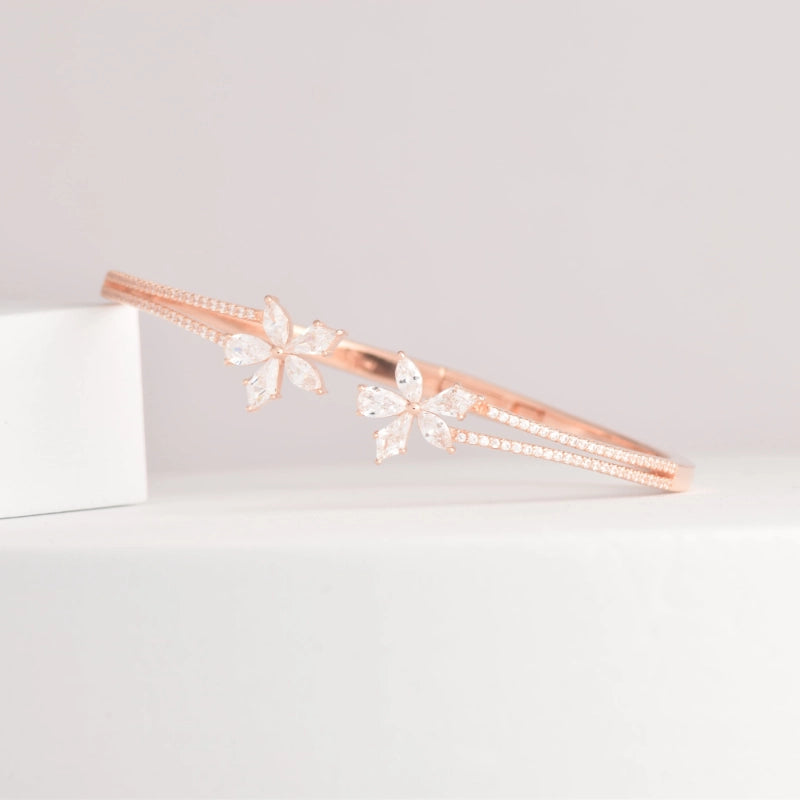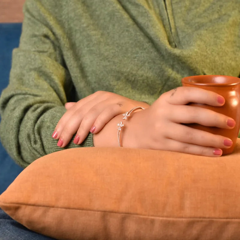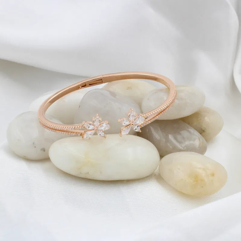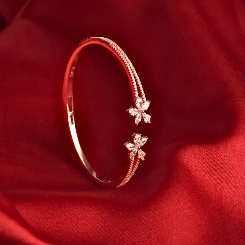 Made with precision and love in 925 Sterling Silver, this bracelet features a smooth rose gold plated finish that catches light with every move. The adjustable clasp and ergonomic kada curve let it slip on like second skin and stay securely in place.