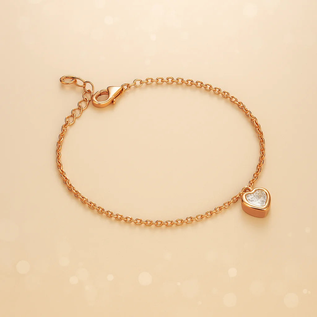 Sweet, subtle, and full of love—this dainty bracelet features a heart-shaped charm with a sparkling stone, all set in fine 925 sterling silver with rose gold plating.