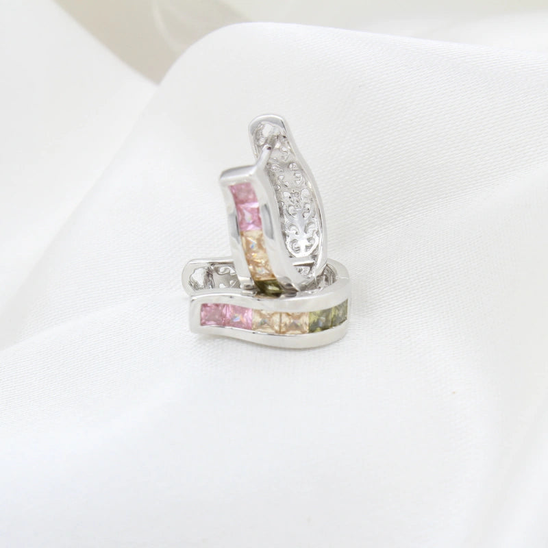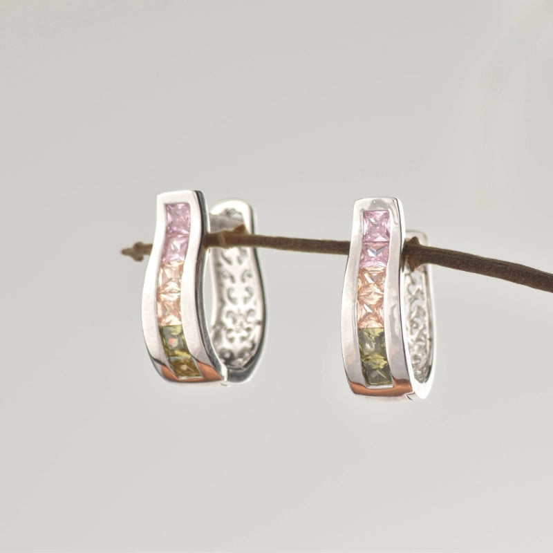 These tricolor stone-studded hoops from Tvisa, glimmering with pink, yellow, and green stones. Crafted from a glamorous 92.5 silver blend, these office wear jewelry and party wear jewelry essentials pop with prismatic color yet maintain elegant, stylish appeal.