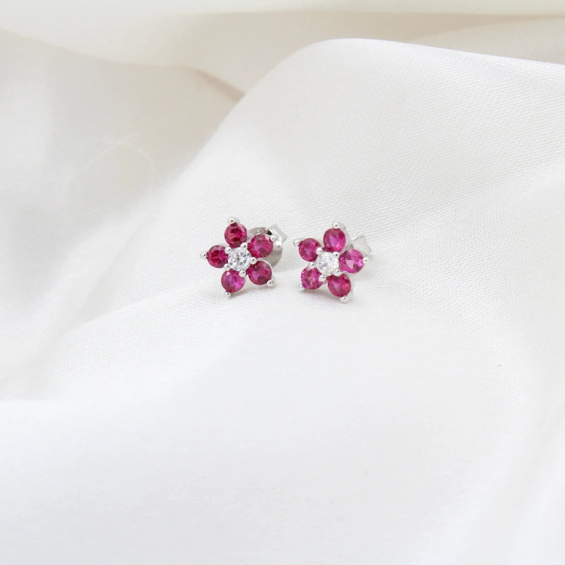 Ever wish you could accessorize with a fresh-picked bloom that lasts forever? These earrings answer that call with a red stone flower design that pops against lustrous silver settings. Exquisite and eye-catching, these small red stone flower silver earrings are the epitome of effortless chic.